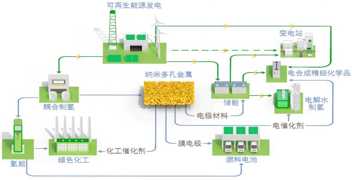 图3 纳米多孔金属基绿色低碳技术