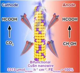 Coupling CO2 reduction with CH3OH oxidation for efficient electrosynthesis of formate on hierarchical bifunctional CuSn alloy
